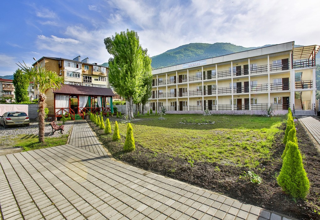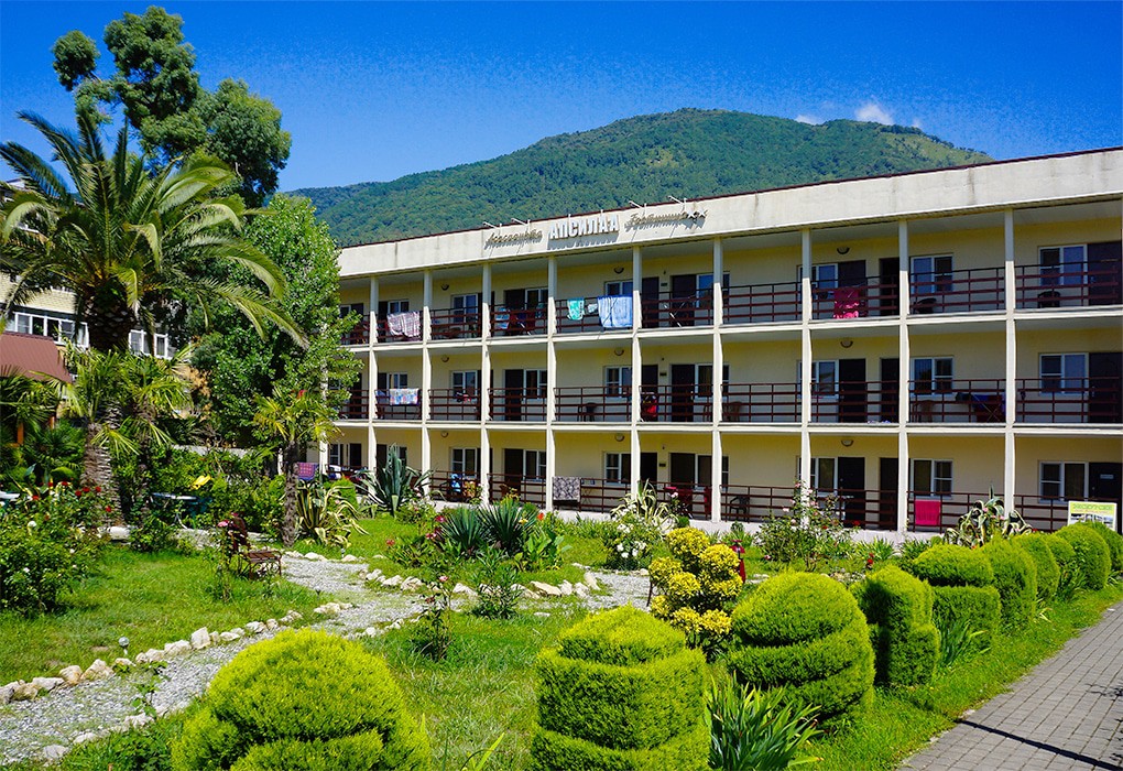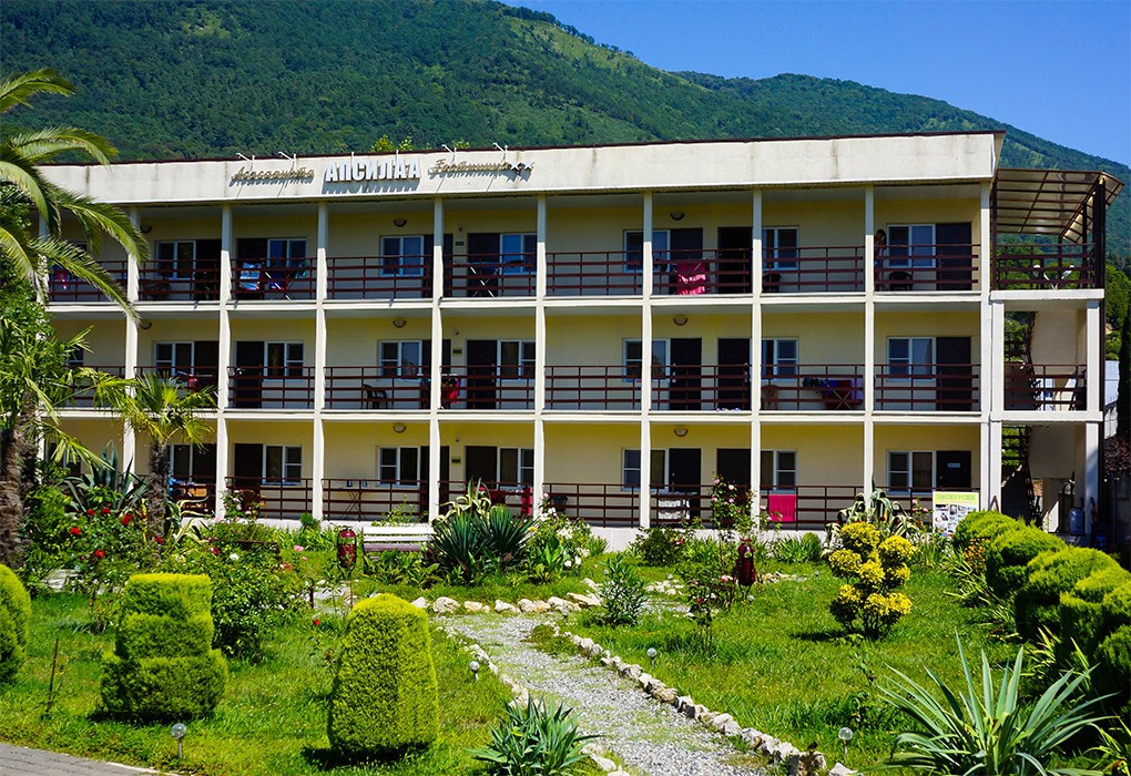 Небольшая, трехэтажная гостиница "Апсилаа" расположена очень удобно - практически в самом центре Новой Гагры, недалеко от Аквапарка, Центрального рынка и Центрального городского пляжа. До моря всего 150 метров, а центр города находится в двух десятках метров от отеля. Отель имеет круглосуточно охраняемую территорию, в том числе автостоянку. Беспроводный интернет предоставляется проживающим гостям бесплатно. На территории гостиницы имеется кафе, где можно посидеть и отдохнуть от дневной суеты за чашечкой кофе. Для детей предусмотрена небольшая детская площадка. От отеля легко добраться пешком к водолечебнице, сувенирным киоскам, ресторанам и барам. Благодаря своему месторасположению «Апсилаа» идеально подойдет как для семейного, так и для делового отдыха.